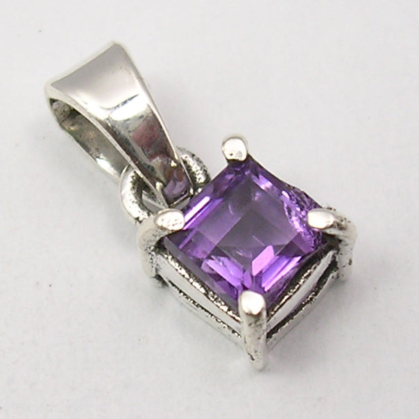 Discover the captivating beauty of our 925 Silver Purple Amethyst Square Pendant. A striking 6 x 6 mm square-cut amethyst, totaling 1.2 carats, commands attention with its rich violet hue and brilliant sparkle. Amethyst is often associated with tranquility and clarity, adding a touch of serene elegance to this piece.