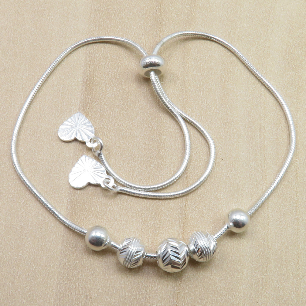 925 Sterling Silver Adjustable beads charm Bracelet