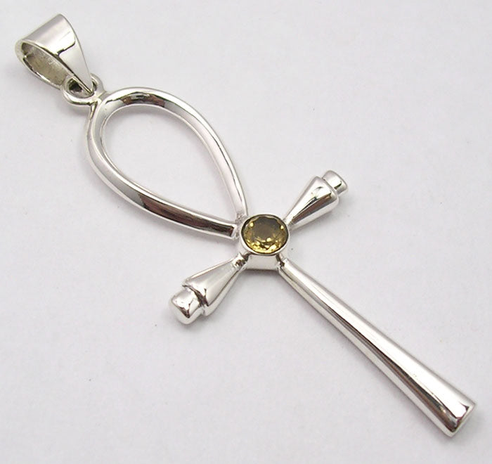 925 Sterling Silver Citrine Cross Pendant 2.3"