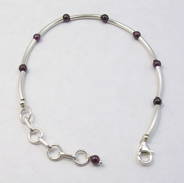 Each bracelet is meticulously crafted from 925 solid sterling silver, ensuring exceptional quality and lasting shine. Interspersed with the silver elements are vibrant 4 x 4 mm round-shaped red garnet gemstones, adding a passionate splash of colour and a touch of organic elegance.